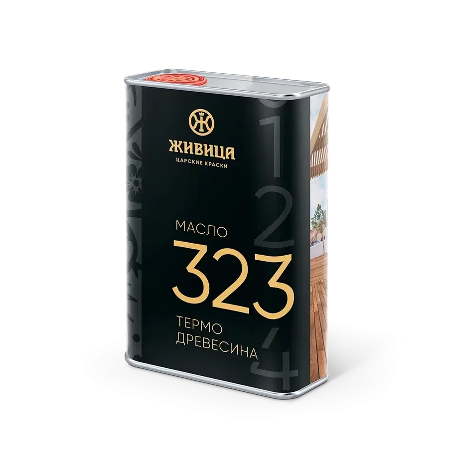 - В основе — реакционное льняное масло, позволяющее создавать защитный полимер даже в термически обработанной древесине