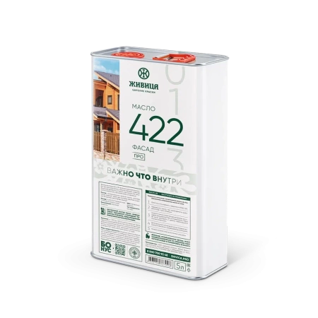 Масло для дерева «Фасад ПРО» с УФ-фильтром объемом 1 литр бесцветное предназначено для финишной защиты фасадов деревянных строений от влаги, УФ-излучения, перепадов температур, изменения цвета, растрескивания.